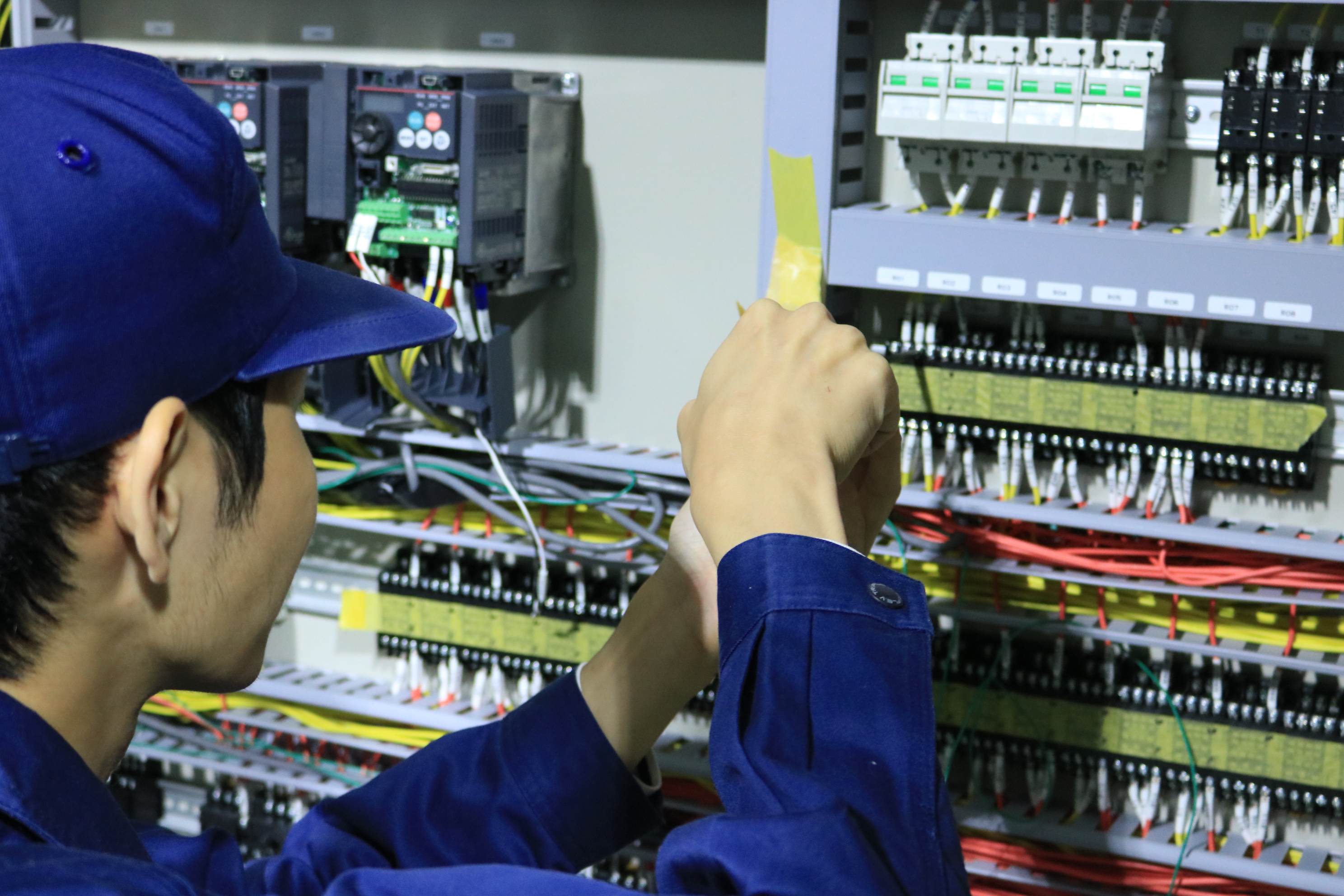 主にお取引先様の現場にてケーブル敷設、計装ダクト工事、電線配管工事を行い制御盤の据え付け、現場計器の取替、配線改造等も行います。